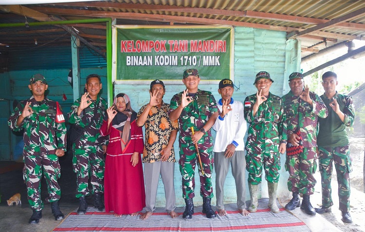 SINARPAGINEWS.COM, TIMIKA – Dandim 1710/Mimika Letkol Inf M. Slamet Wijaya, S.Sos,. M.Han,.M.A. didampingi Pasiter dan Babinsa setempat melakukan peninjauan ke lahan percontohan ketahanan pangan Kodim 1710/Mimika milik Kelompok Tani “Mandiri” yang merupakan binaan Kodim berlokasi di Kel. Wonosarijaya, Distrik Wania, Kab. Mimika, Jumat (13/06/2025). Peninjauan ini bertujuan untuk mempelajari dan mengetahui sampai sejauh mana program ketahanan pangan yang telah dilaksanakan di wilayah Kodim 1710/Mimika dengan pendampingan Babinsa.