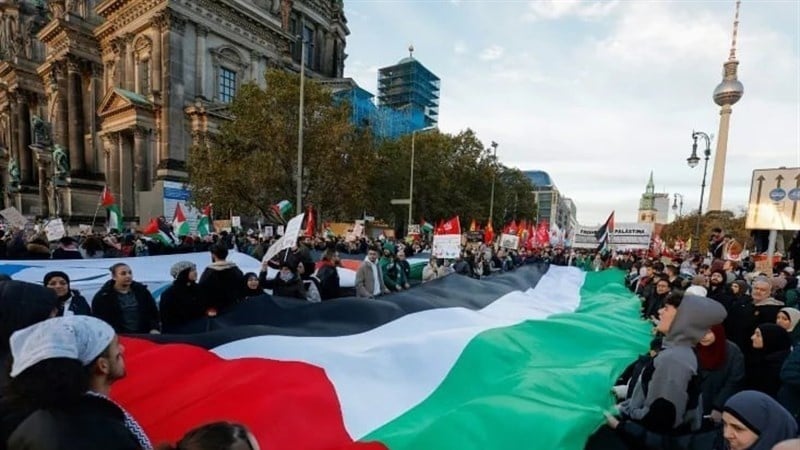 Di Berlin, ibu kota Jerman, ratusan orang mengibarkan bendera Palestina dan mengutuk kejahatan biadab Zionis di Gaza. Sementara itu, di Austria, para demonstran memamerkan gambar syuhada Gaza dan mengungkap pembantaian brutal yang dilakukan Zionis terhadap anak-anak Gaza.