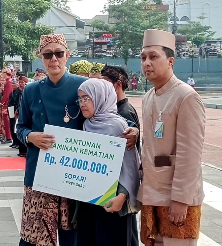 Wali Kota Sukabumi, H. Ayep Zaki, secara langsung menyerahkan santunan sebesar Rp42 juta kepada ahli waris almarhum Sopari, seorang driver Grab yang semasa hidupnya merupakan peserta aktif BPJS Ketenagakerjaan.