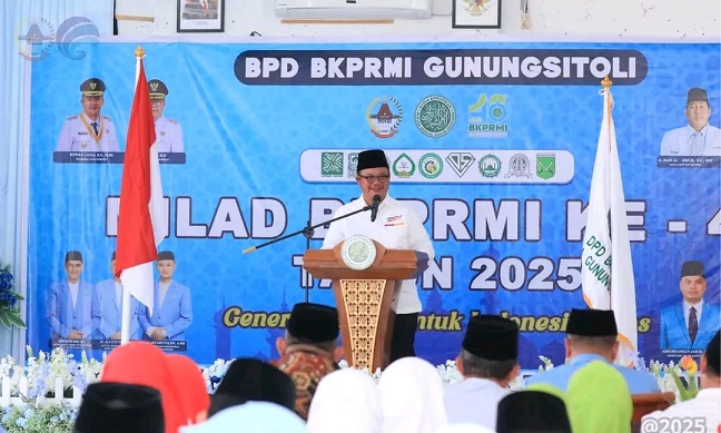 SINARPAGINEWS.COM, GUNUNGSITOLI – Wali Kota Gunungsitoli, Sowa’a Laoli, S.E., M.Si., menghadiri peringatan MILAD Badan Komunikasi Pemuda Remaja Masjid Indonesia (BKPRMI) ke-48 Tahun 2025 yang digelar oleh BPD BKPRMI Kota Gunungsitoli. Acara ini mengusung tema “Generasi Emas untuk Indonesia Emas,” bertempat di Ruang Rapat III Kantor Wali Kota Gunungsitoli, Rabu (10/09/2025).